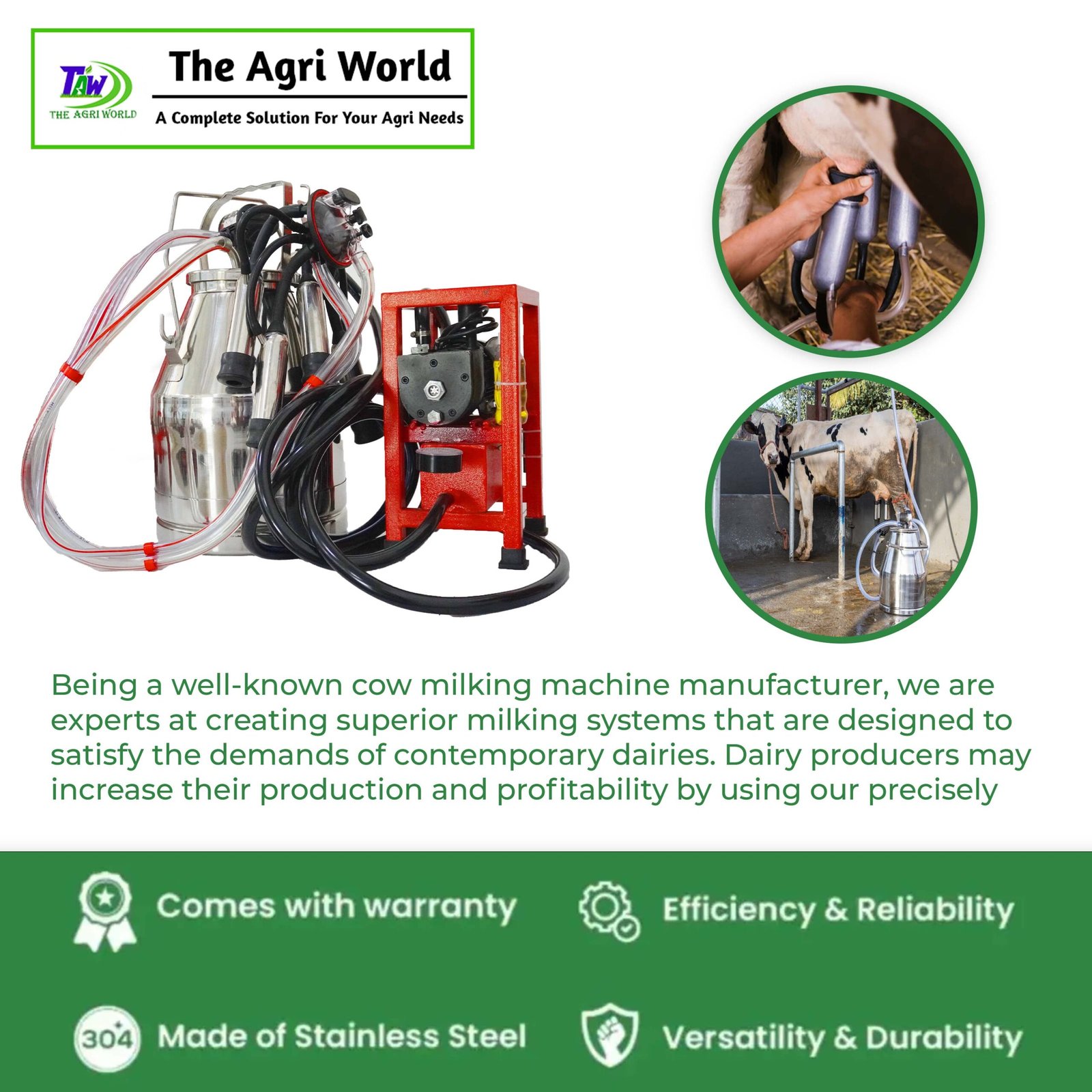 • Motor: Powered by a 0.35 HP motor for efficient milking.