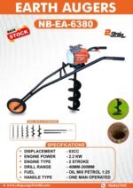 The TAW 63 CC 2 Stroke Trolley Earth Auger (TAW–EA-6380) is a powerful, 63cc, 2-stroke engine auger designed for digging holes in various terrains. It features a trolley for easy transport and enhanced maneuverability. Ideal for tasks like post hole digging, tree planting, and fencing, it combines power, durability, and user-friendly operation for both professional and DIY use.   (WITHOUT DRILL)